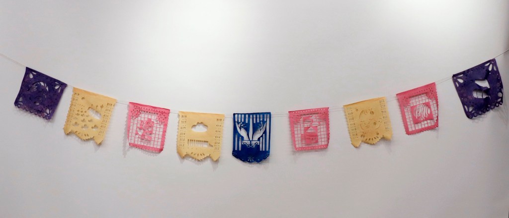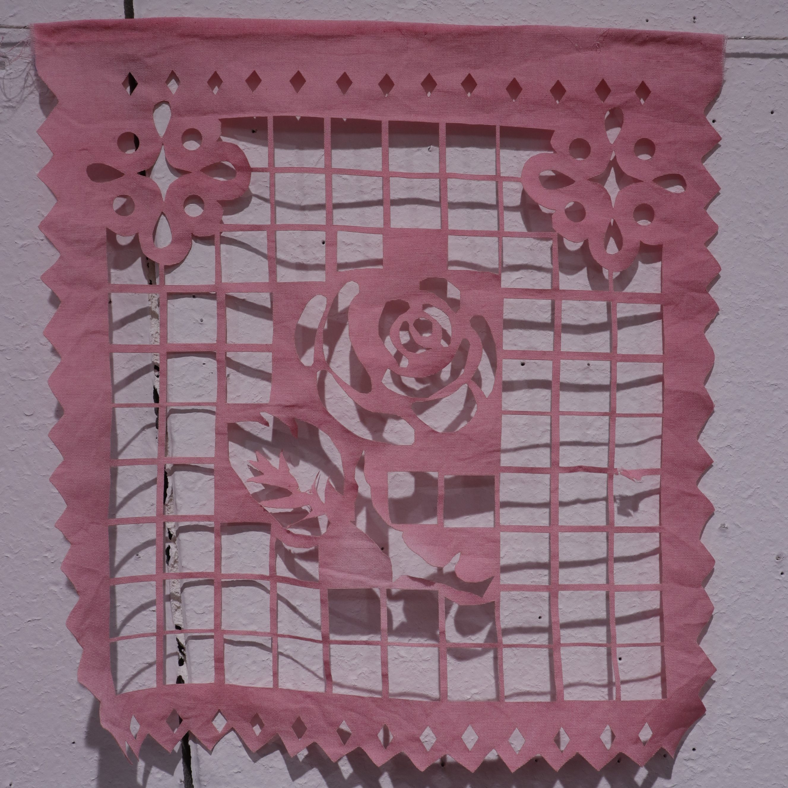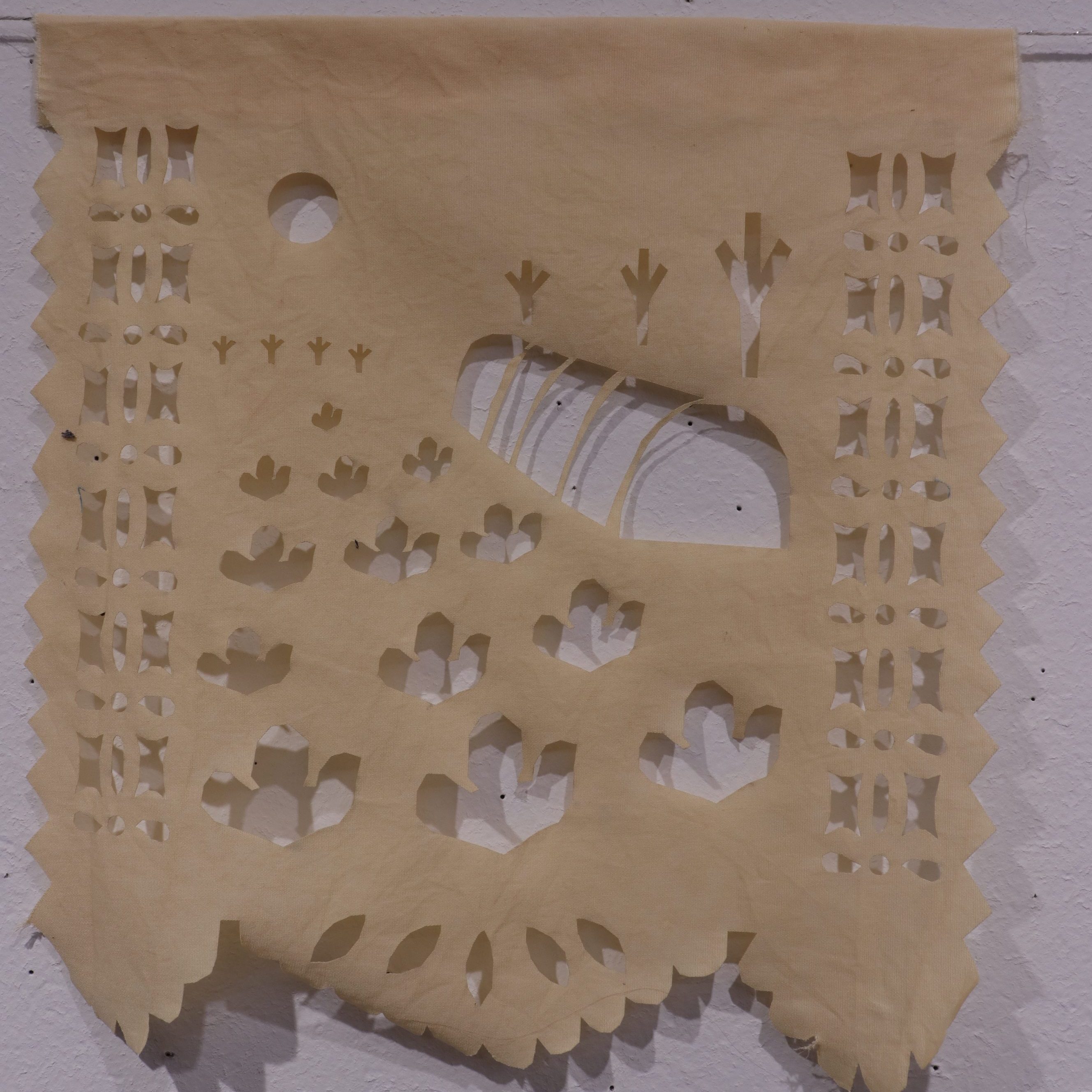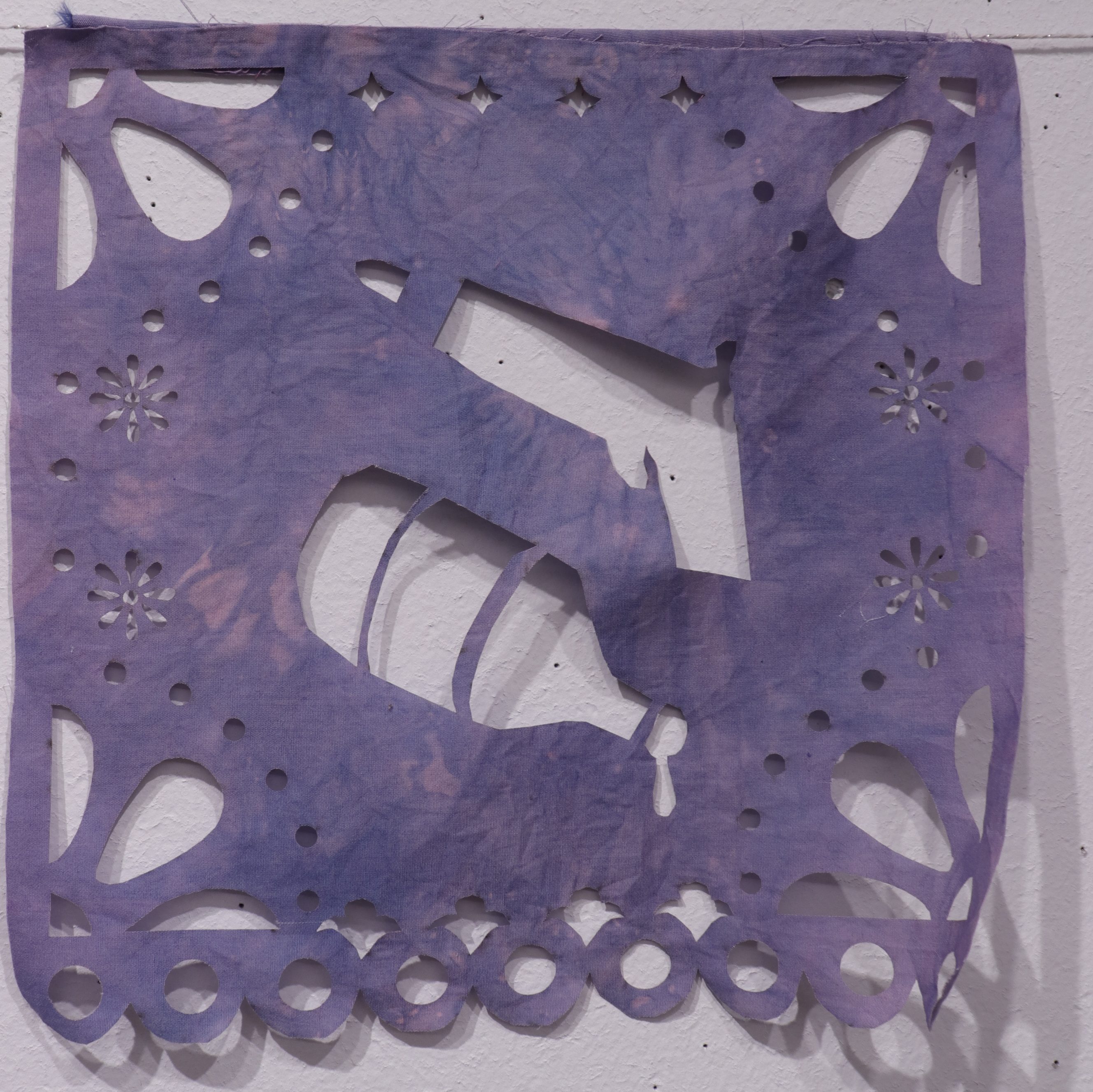 This project is a papel picado, a traditional Mexican craft and storytelling form. I crafted this banner with the intention of displaying stories and experiences from my Mexican family. The stories range in topics from death, labor, joy, nostalgia, and more. The vibrant colors are naturally dyed with plants, like indigo and cochineal. In my family, history is not shared openly, but offered in rare private moments. Papel Picado is a collection of honest stories, a family tree– it’s a tender display of ancestry and heart.