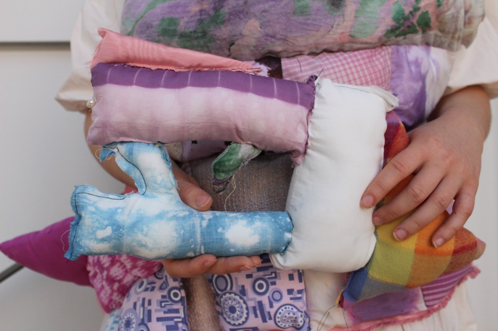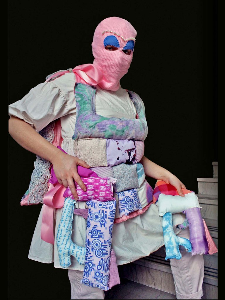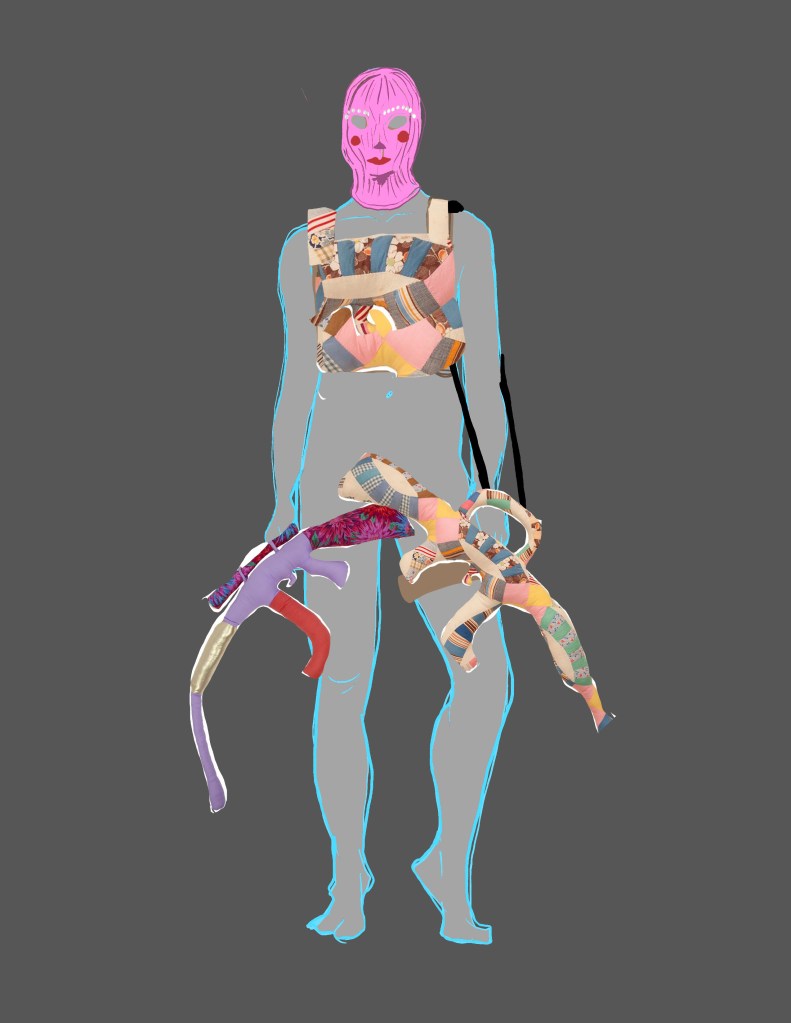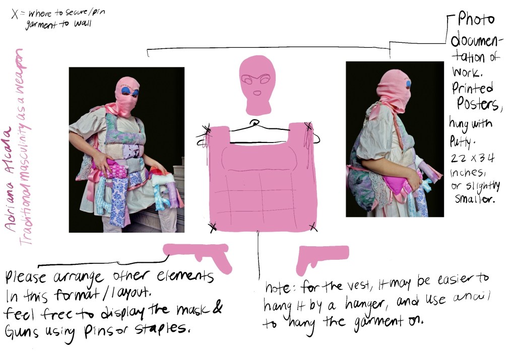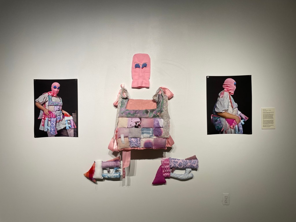 My piece itself is not “traditionally” masculine: it is pink, quilted, adorned with pearls, blue eyeshadow, and bows! The goal of this piece is for viewers to recognize that masculinity is not defined by colors, fashion, sexual orientation, etc., acknowledge the harm that this connection has done in our communities, and redefine traditionally masculine qualities in a way that is contemporary, diverse, and uplifting.